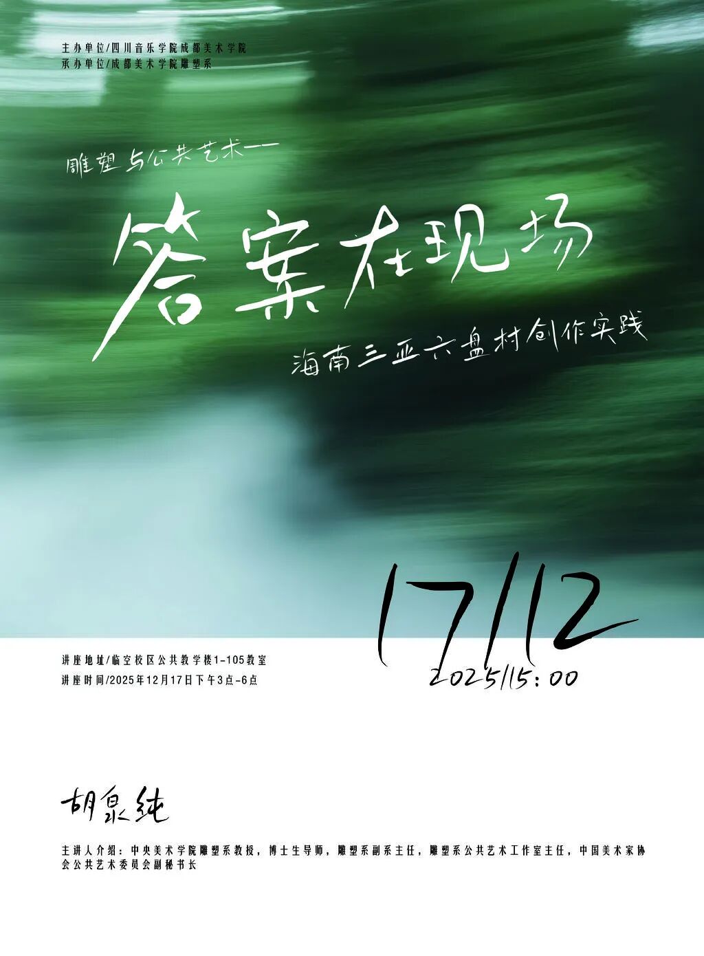 时间:12月17日15:00地点:临空经济校区公共教学楼1-105教室主讲人:胡泉纯主办单位:成都美术学院