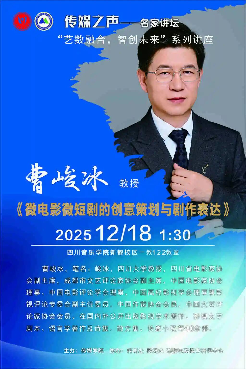 时间:12月18日13:30地点:新都校区1教122智慧教室主讲人:曹峻冰主办单位:传媒学院