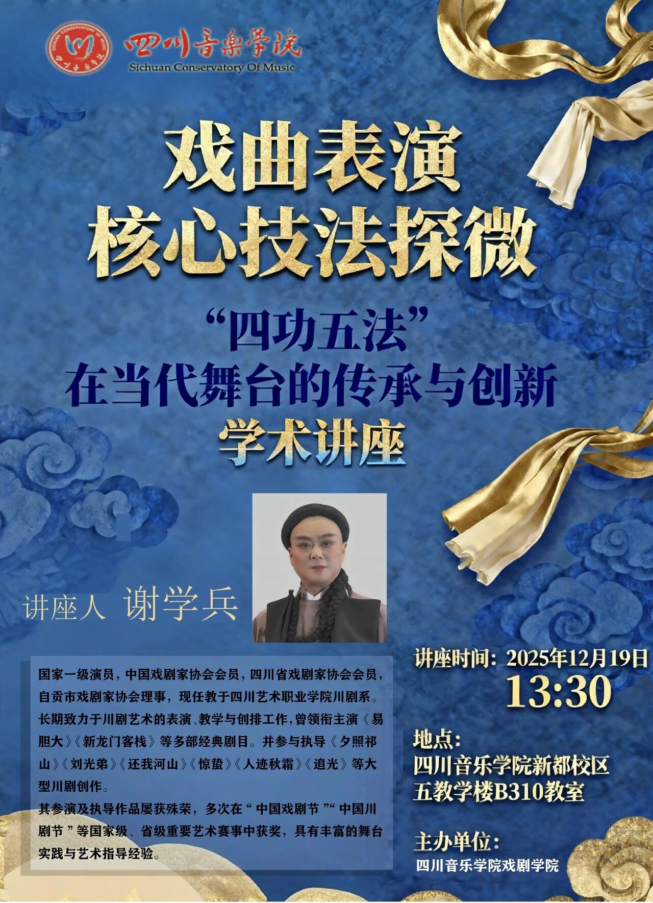 时间:12月19日13:30地点:新都校区五教学楼B310教室主讲人:谢学兵主办单位:戏剧学院