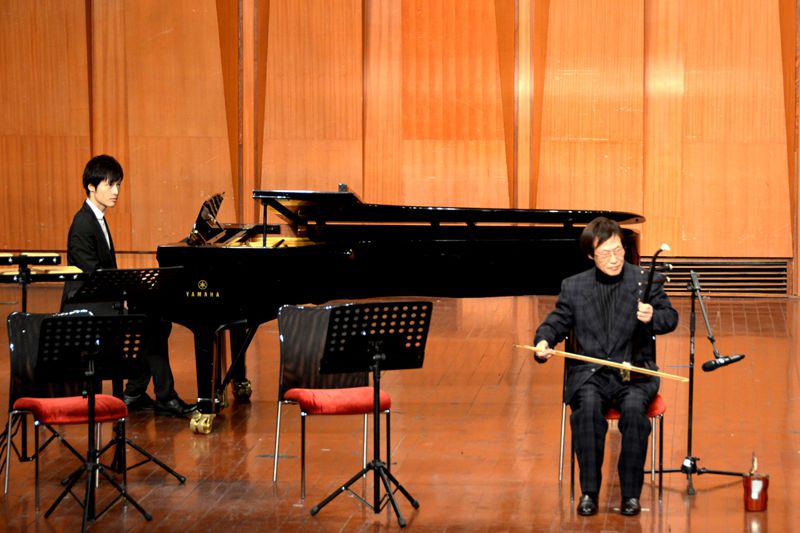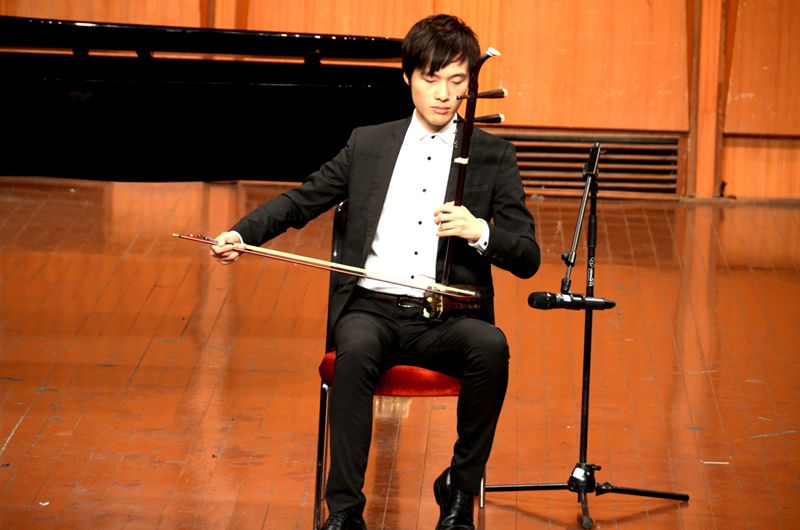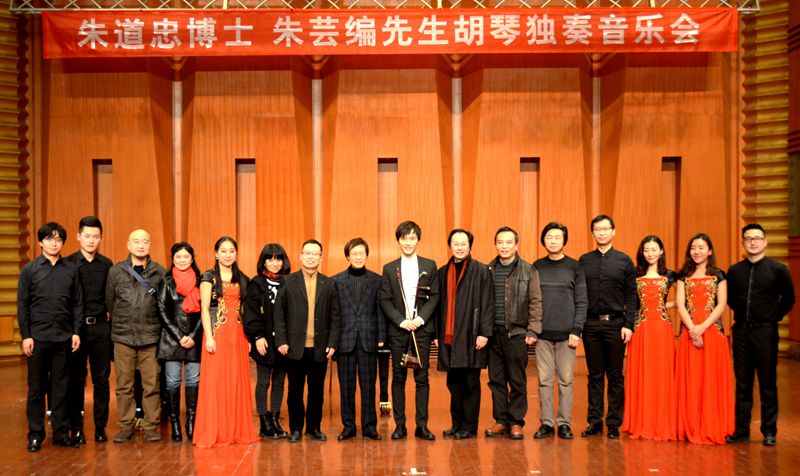 2016年1月6日晚,香港音协主席朱道忠先生携其子——被誉为“天才音乐少年”的朱芸编,在我院大音乐厅举办了一场别开生面的胡琴独奏音乐会。本次音乐会是由伟德bv国际体育艺术处、民乐系主办。学院副院长孙洪斌等领导及艺术处、民乐系相关职能部门负责同志观看了此次音乐会。