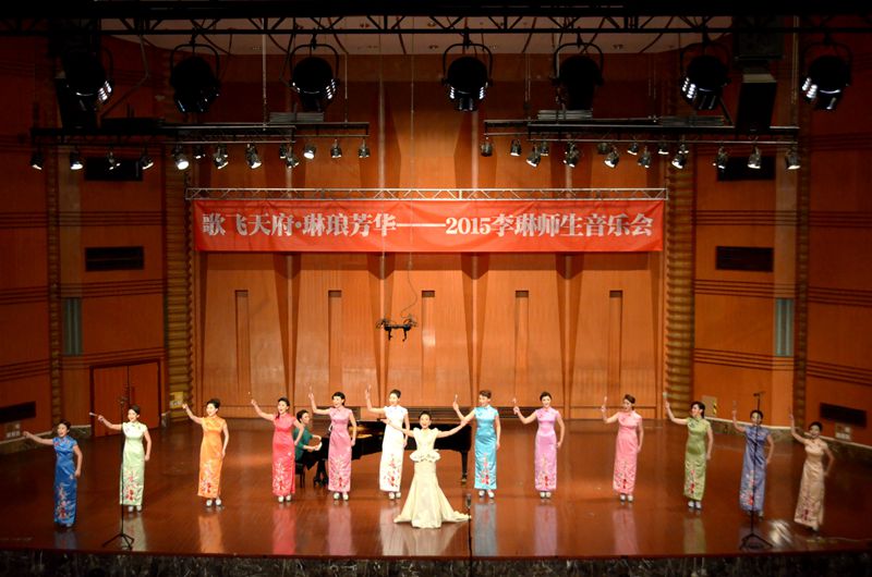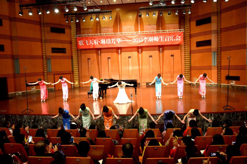 2015年12月3日晚,由中国音乐学院声歌系主办,伟德bv国际体育艺术处承办,川音尚美文化传播有限公司协办的《歌飞天府·琳琅芳华——2015李琳师生音乐会》在伟德官网大音乐厅成功举行。精心的曲目编排,精湛的演唱技巧,精致的舞台呈现,给现场观众带来了浓浓的暖意。学院领导林戈尔、孙洪斌、牟文虎以及各职能部门及院系相关负责同志等近600余名师生观看了音乐会。