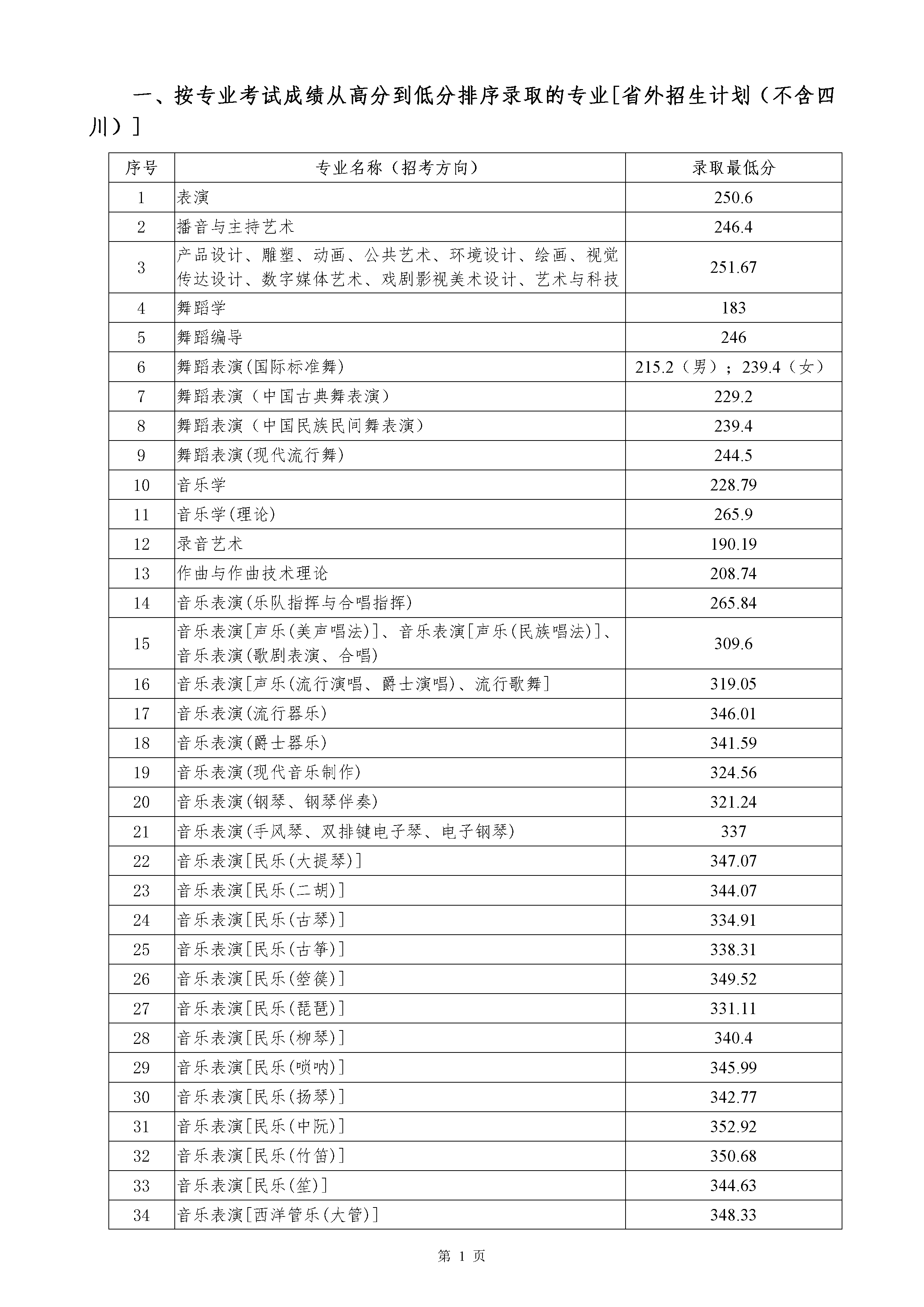 伟德bv国际体育2020年省外招生艺术类本科各专业录取最低分