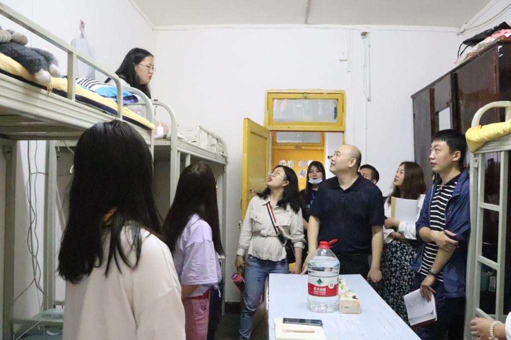 2020年9月16日下午,万象城awcsport官网党总支副书记屈川,学工办副主任崔宝玉,专兼职辅导员及辅导员助理走访了新生寝室。