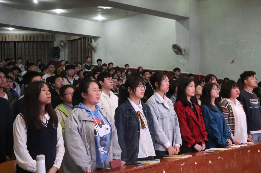 为保证2020级新生军训顺利举行,3月14日晚八点万象城awcsport官网于南坝校区学术报告厅开展军训动员大会。学工办副主任崔宝玉,思想政治辅导员罗云出席活动,大一全体学生参加动员会。