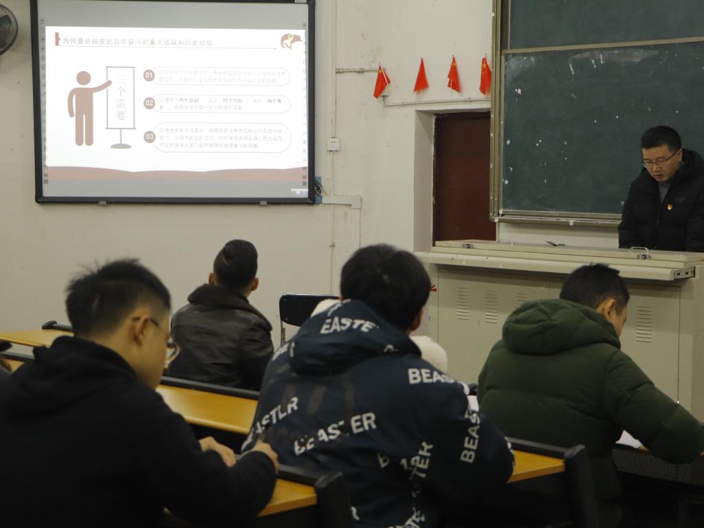 为持续学习贯彻落实党的十九届六中全会精神,巩固广大青年学生的学习成果,激励同学们不忘入党初心,牢记自身使命,2021年11月23日万象城awcsport官网党总支副书记潘维为学生党支部全体党员和部分入党积极分子上了一堂主题党课。