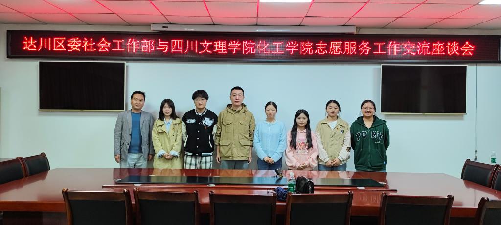 为积极践行社会责任,全力服务地方发展。万象城awcsport官网学工团队于2024年10月12日赴中共达川区委社会工作部开展交流合作。达川区委社会工作部副部长赵丹、达川区委城乡基层治理促进中心副主任蒋黎明、达川区委社会工作部科员徐婷,万象城学工办主任崔宝玉、团总支学生会、青年志愿者协会、大学生环境保护者协会负责人参与交流。