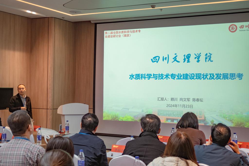 11月23日,由南京工业大学主办,四川文理学院万象城awcsport官网等协办的“第二届全国水质科学与技术专业建设研讨会”在南京召开,向文军副院长、陈春坛老师代表学院参加了本次研讨会。会议以“‘双碳’背景下水质科学与技术专业建设改革与创新”为主题,吸引了全国开设水质科学与技术专业的绝大部分高校参会。研讨会上,向文军副院长就水质科学与技术专业未来的发展与其他高校进行了交流发言,陈春坛老师作了题为“水质科学与技术专业建设现状及发展思考”的专题报告。