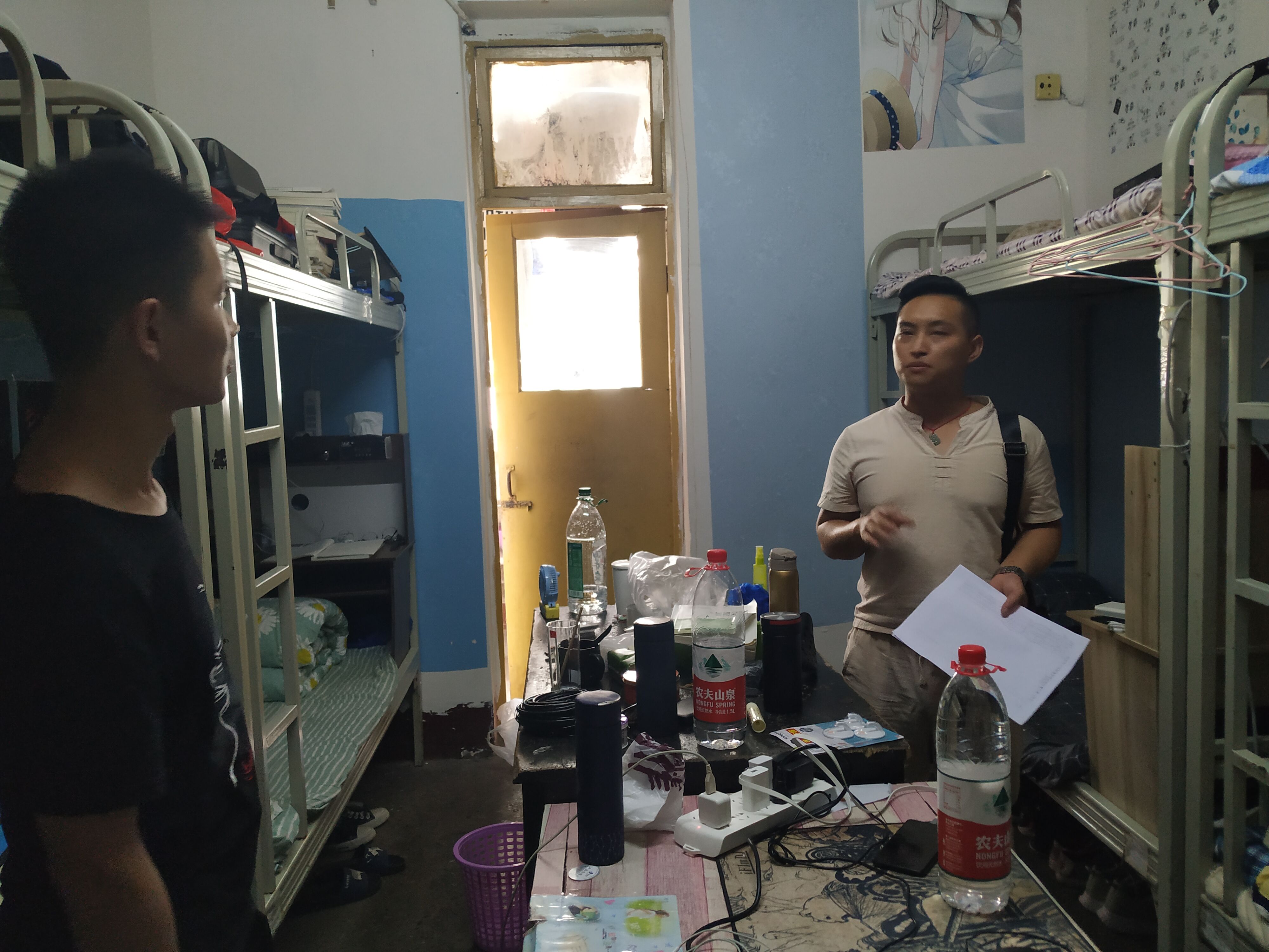 学院领导和辅导员们分别检查男生宿舍和女生宿舍,屈川书记和罗云老师率先检查了隶属于男生宿舍的一舍、二舍以及四舍,屈川书记在检查过程中指出,同学们要注重寝室安全问题,不得使用烧水棒等大功率电器,加强寝室文化的建设,营造良好的寝室氛围,并建议制定寝室公约,督促同学们提升自身素养,展现新一代大学生积极向上的精神面貌。屈川书记和罗云老师同时询问了同学们的生活情况,是否还有学习生活等方面的其他需求,并希望同学们积极建言,主动表达自己内心诉求。