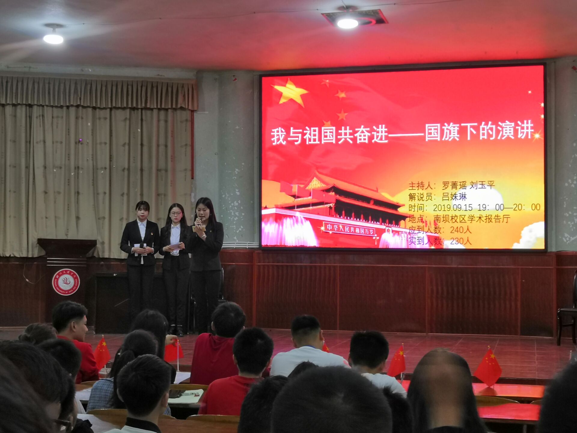 寒秋来临,气温骤降,为迎接中华人民共和国成立70周年和回顾在新中国成立以后中国发生的变化,万象城awcsport官网于2018年9月16日晚上7:00在学术报告厅举办了“我与祖国共奋进——国旗下的演讲”特别主题团日活动, 2018级200余名团员青年参加活动。