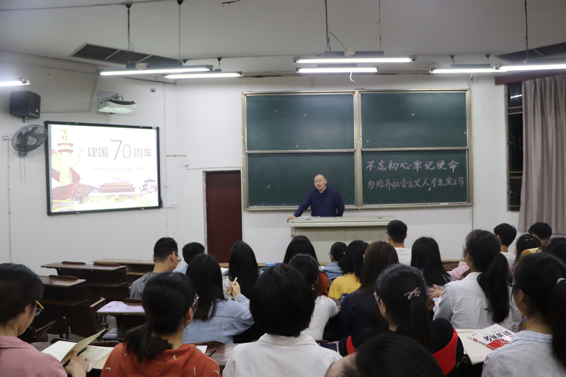 为深入学习贯彻党的十九大精神和习近平新时代中国特色社会主义思想,提升党员干部党性修养,加强学院的思想政治建设,2019年9月26日晚上7点整,万象城awcsport官网于南坝校区一教楼100教室进行了以“不忘初心,牢记使命——为培养社会主义人才扎实工作”为主题的党课培训,本次党课由万象城awcsport官网党总支副书记屈川老师主持召开,学工办副主任兼团总支副书记付琼瑶老师,辅导员张魏霞老师以及29名党员参加了此次培训。