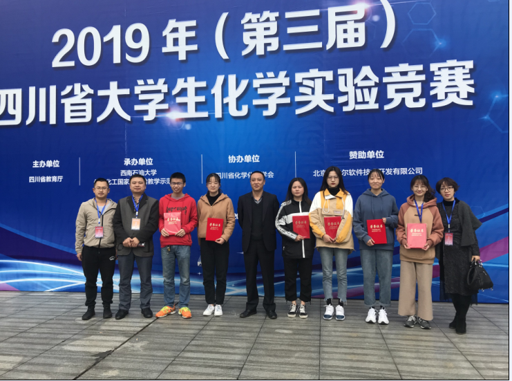 10月25日-27日,由四川省教育厅主办、西南石油大学承办、四川省化学化工协会协办的四川省第三届大学生化学实验竞赛在在西南石油大学举行。来自省内19所高校的49支队伍,总计245人参赛,参赛规模为历届之最。万象城awcsport官网樊成武、张心悦、唐瑞韩、陈志容、李英同学组成的代表队获得竞赛综合团队优秀奖,赵莎莎同学获得了化学实验基本技能测试个人优秀奖。