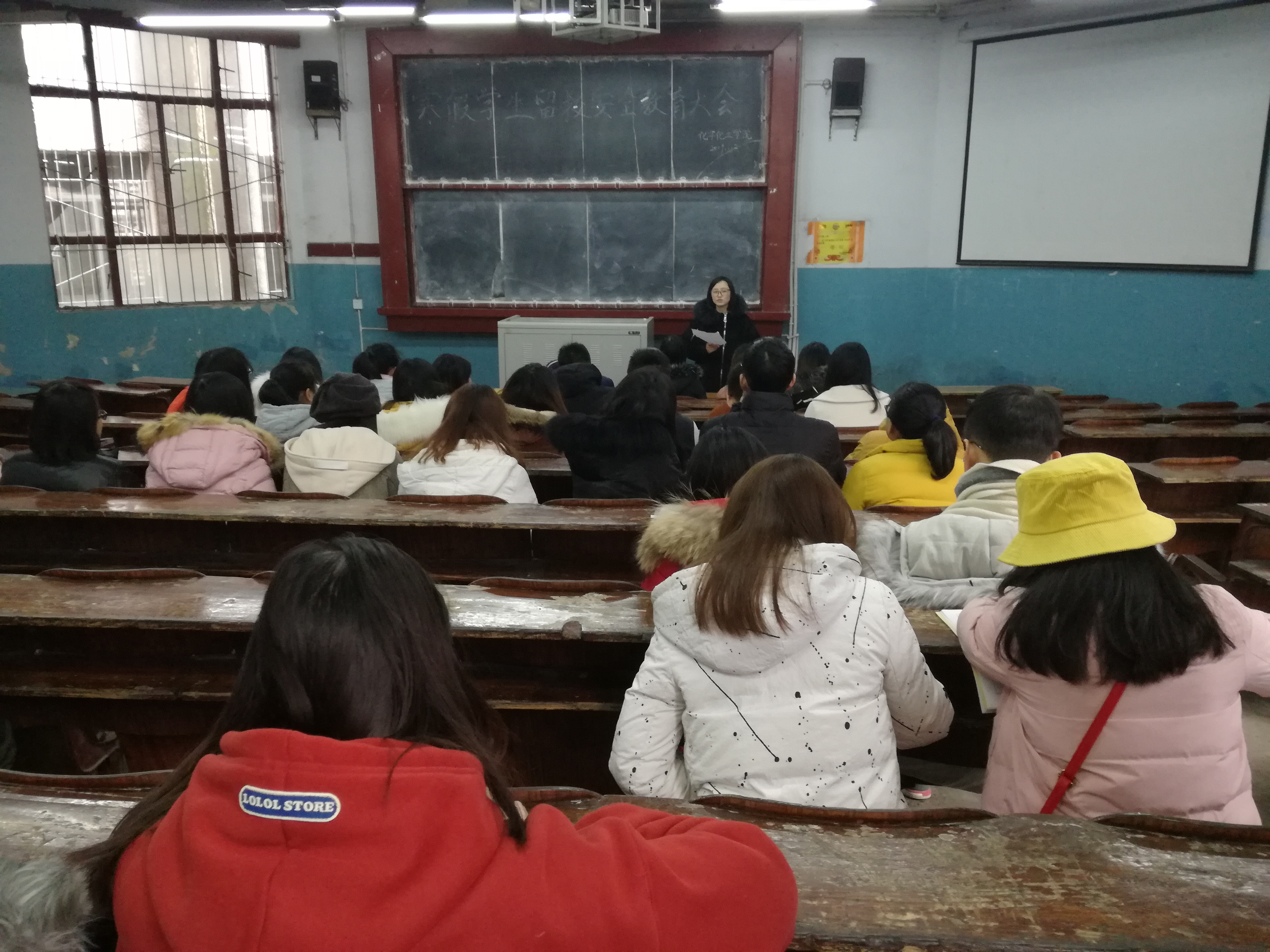 随后,付老师就学生寒假留校工作及注意事项做了具体安排,并对留校的同学提出了三点要求:第一,杜绝夜不归宿,禁止将校外人员带进学生宿舍,并且时刻和家人保持联系,让家人时刻知道自己的行踪;第二,学生应注意人身和财产安全,安全使用电器,做到人走电断,杜绝安全隐患;第三,注意防控流行性感冒、艾滋病等传染病,要注意饮食卫生,防止食物中毒。最后,付老师希望留校同学能合理安排假期的学习和生活,合理规划,提升自我,度过一个有收获、有意义的寒假。