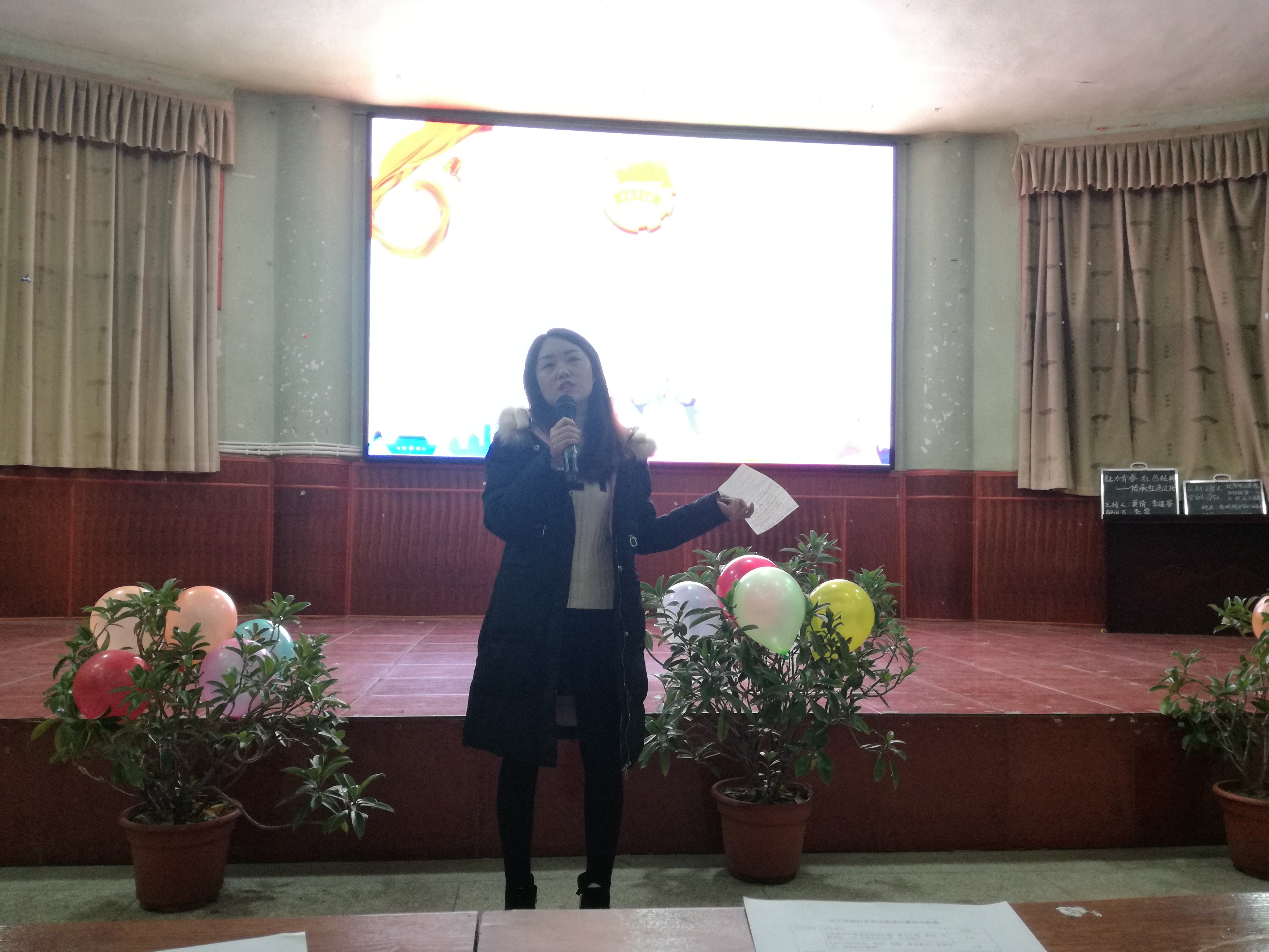 为促进同学们对红色文化的了解,鼓励同学们学习革命先辈的优良品质,2018年11月18日晚七点,万象城awcsport官网在南坝校区学术报告厅开展了以“魅力青春,红色经典”为题的团组织生活。辅导员张魏霞老师、刘丹老师及团总支第一副书记孙亨宇等部分团学干部出席了本次活动并担任评委,大一280余名同学参与了此次活动。