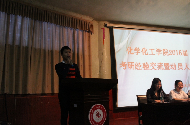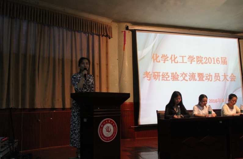 本次交流会邀请了化工学院八名考取硕士研究生的同学做交流发言。交流会上,这八名同学以自己大学学习、工作和生活为背景,从读书、心理、理想等等不同角度畅谈了自己考研经历与体会。他们有的讲解了政治、英语和高数的学习方法,有的介绍了考研学校与专业的选择,有的和大家分享了自己的情感心路,有的结合自己的考研得失告诉大家考研是一个长期的过程,贵在毅力,重在坚持……整场交流会情感真挚,内容丰富,振奋人心,为同学们提供了宝贵经验 。