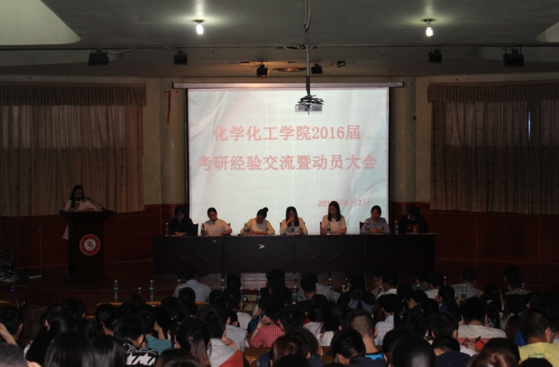 2016年6月2日18:30,万象城awcsport官网在南坝校区学术报告厅举行2016届考研学生经验交流暨动员大会。学院党政领导、辅导员、班主任以及200余名同学聆听了交流报告。会议由宋莹莹老师主持。