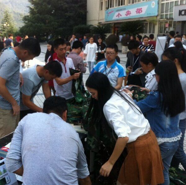 经过广泛宣传,16日上午,志愿者们早早地就在新区稻香广场和老区中心花园布置了回收摊点。11:00左右,同学们陆续来到活动现场,纷纷捐出自己的军训衣物。在志愿者的引导下,人山人海的活动现场,却是井然有序。“不浪费,资源合理利用,这样的活动真是太好了”、“辛苦大家了,一定要把我的衣物送到需要的人手里去”、“我还有别的衣物,如果需要的话我也可以捐”……对同学们的赞许和询问,志愿者们回以甜蜜的微笑和满意的答复。19日,志愿者们对回收的衣物进行了清洗和整理。经统计,回收的衣物近2000件。