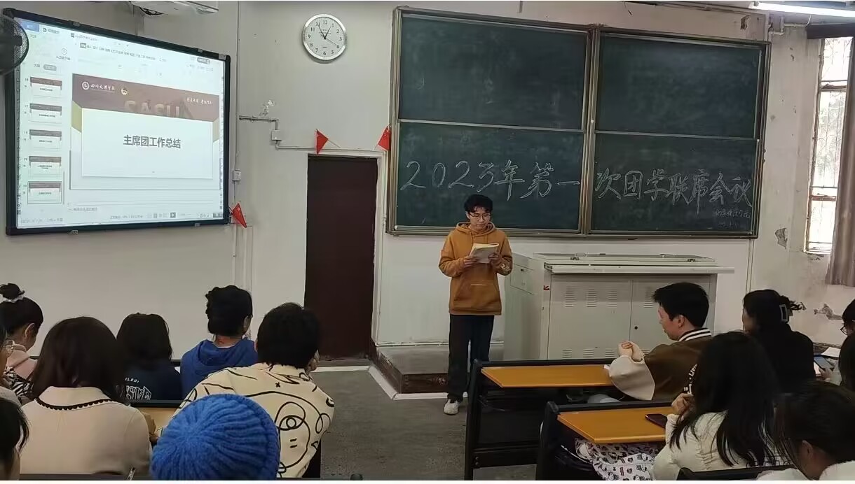 为了更好的推进和落实学院团组织学生会的工作,加大内部工作管理,增强部门间协作能力,2023年3月3日学院于一教楼100教室召开了2023年第一次团学联席会议。万象城学生会主席团成员和各部门代表到场参加会议。