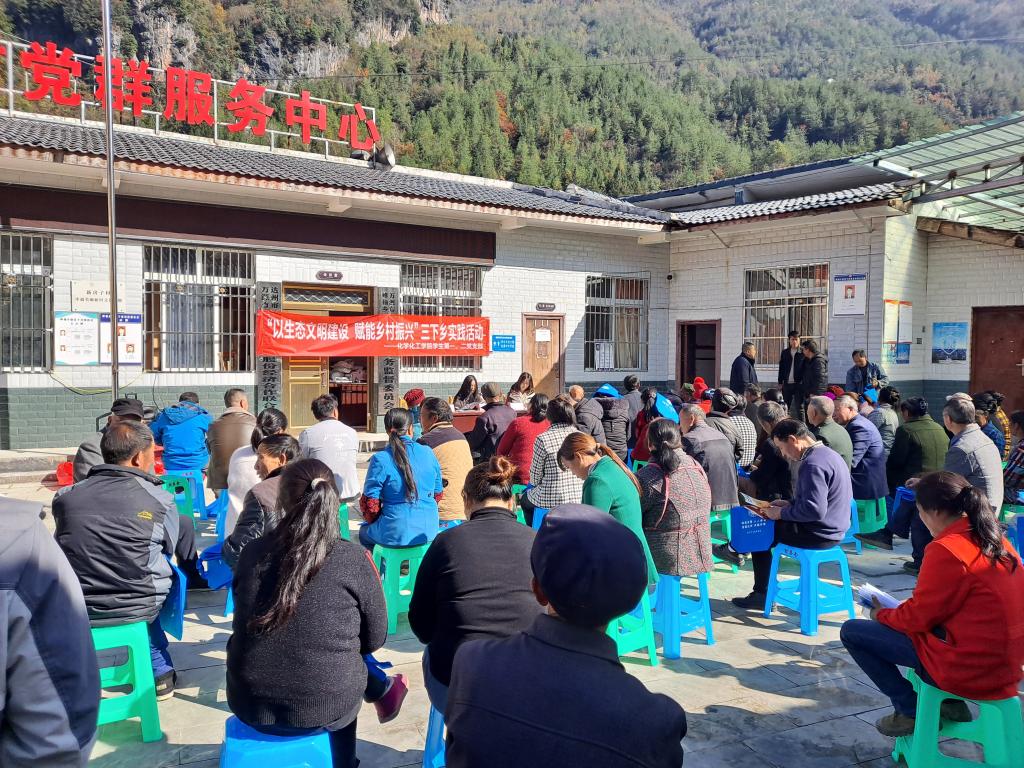 为贯彻落实学习习近平新时代中国特色社会主义思想主题教育活动要求,宣传习近平生态文明思想,2023年11月23日,达州市生态环境局、四川文理学院赴万源市蜂桶乡新房子村,联合开展“习近平生态文明思想进农村”活动。