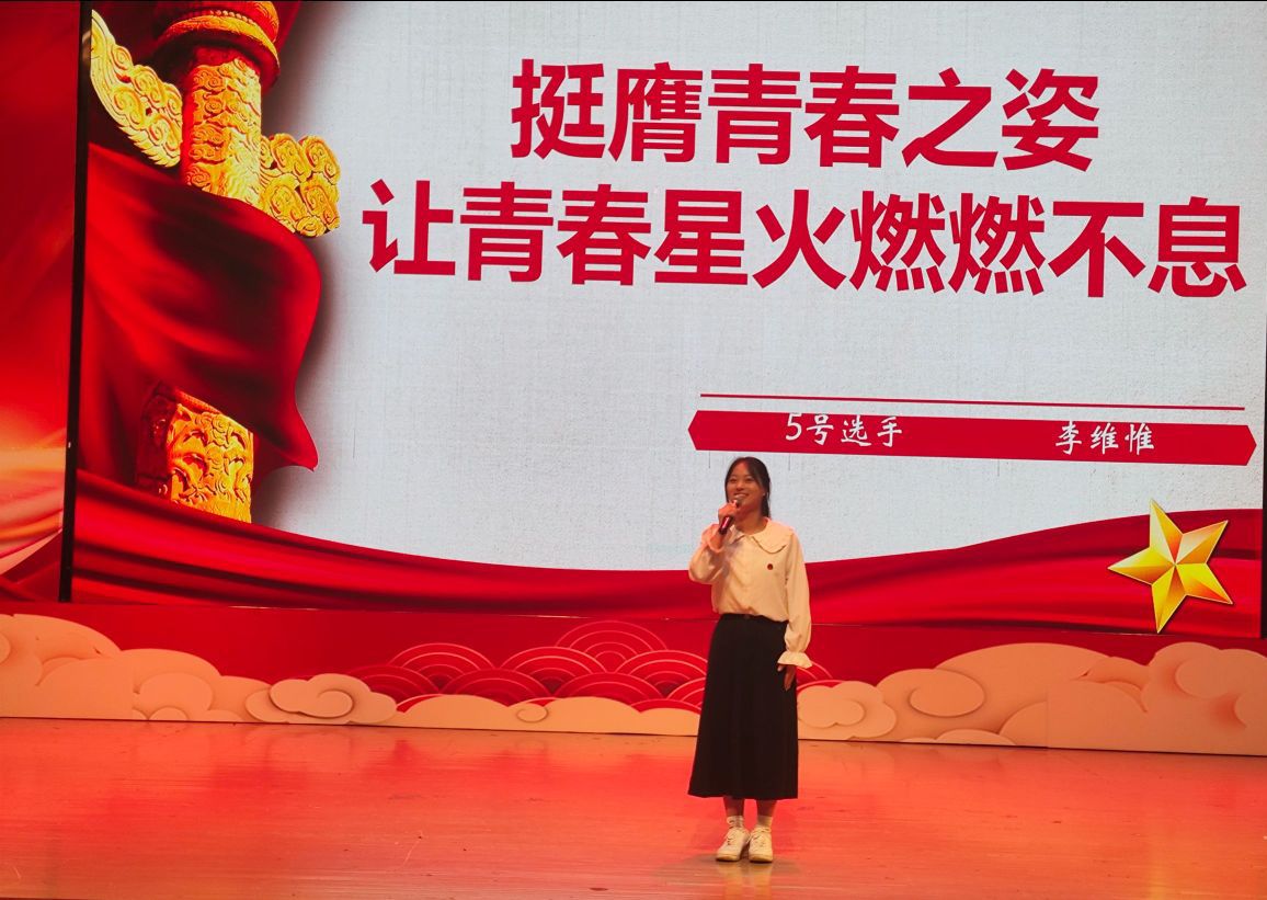 在李维惟同学的演讲中,以探讨青春的话题切入主题,用生动的语言将她通过品读他人青春找到的答案娓娓道来。她以李大钊为例,从其女儿李星华角度展现李大钊为革命的付出及牺牲,展现出青年的责任担当。同时,她也通过回顾无数青年毕业返乡,致力于脱贫攻坚事业,悟出青春应壮志凌云,应勇担责任,更应奋斗不息。她还讲述了诸多当代青年事迹如苏翊鸣夺冠、郑钦文摘冠、青年为烈士碑描金、登泰山举国旗等,深刻诠释着青年人的使命和担当,当代青年已接过青春火炬,正以行动交出时代答卷。最后,她深情地表示,中国青年应有理想、有信念,挺得起脊梁,担得起大任,为中国式现代化贡献力量。