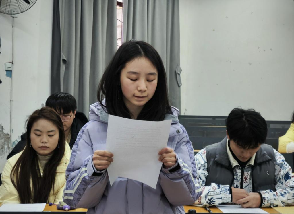 紧接着,进入会议第一项议程,讨论是否接受武嘉彤、李隆香、晏秀君、游佳委 4 名预备党员的转正申请。首先,4名预备党员逐一宣读转正申请,汇报预备期期间的工作思想情况。他们在汇报过程中表示要始终以一名党员的标准严格要求自己,在思想上始终与党中央保持高度的一致,在工作上能够认真完成组织交代的各项工作,在学习上勤奋进取,努力提升个人综合素质。随后由各自培养联系人报告申请人在预备期间的教育考察情况,与会党员发表意见,对其能否按期转正展开充分讨论,并进行投票表决。经过大会讨论投票表决,武嘉彤等4名预备党员全票通过,按期转为正式党员。