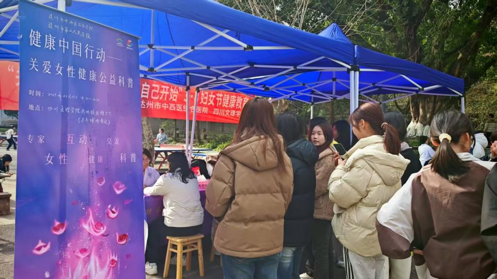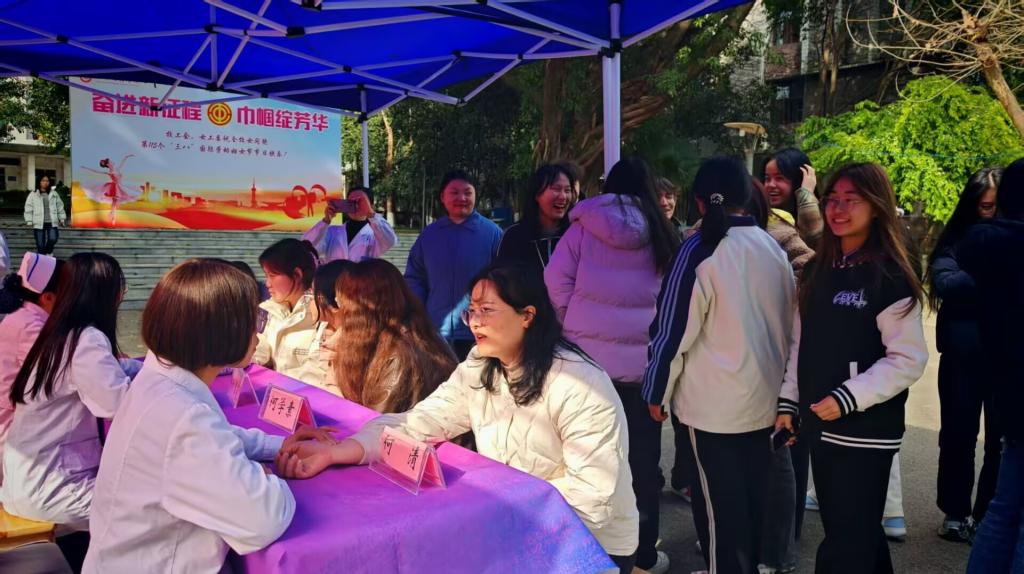 在2025年国际劳动妇女节来临之际,为提高学院女教职工及女同学的健康意识,2025年3月7日,万象城awcsport官网于南坝校区戛云社区开展了3·8妇女节健康教育主题活动。本次主题活动涵盖女性健康知识讲座与中医专家义诊两大环节,特别邀请了达州市中西医结合医院妇产科产前诊断中心副主任、主任医师何学素及其团队前来。活动现场气氛热烈,近百名师生代表齐聚一堂,共同学习健康管理知识。