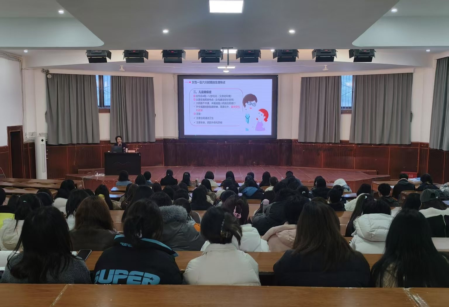 活动伊始,由何学素医师作女性健康知识讲座。何医师以全生命周期健康管理为主线,系统阐释了女性各年龄段的保健要点。针对新生儿期母体激素影响、儿童期卫生防护、青春期性教育及HPV疫苗接种、围产期疾病防控、更年期症状管理、老年期疾病预防等关键节点,结合临床案例进行了专业讲解。当谈及HPV疫苗防护时,何医师特别强调:"宫颈癌作为唯一可预防的妇科恶性肿瘤,规范接种结合定期筛查可显著降低发病率。"紧接着,何医师又深入剖析了常见妇科疾病症状,围绕白带异常、月经失调、腹痛及腹部包块等问题展开讲解,将晦涩医学知识通俗化。谈及阴道炎,何医师细致区分细菌性、霉菌性等不同类型的特点、治疗及预防方式,强调阴道炎易复发、难根治,日常务必注重个人卫生。针对支原体、衣原体感染引发的阴道炎,何医师提醒需及时就医检查,接受针对性治疗。