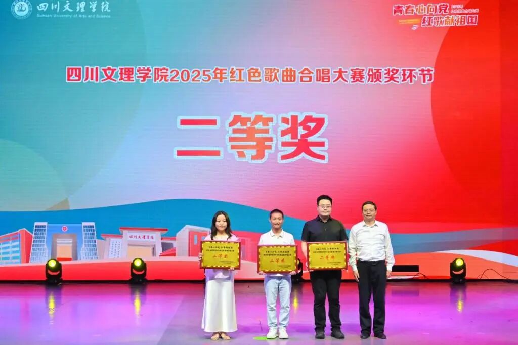 最终,经过激烈角逐,万象城的同学们凭借出色的舞台表现,以第四名的成绩荣获四川文理学院2025年红色歌曲合唱大赛二等奖。这一荣誉不仅是对师生们辛勤付出的肯定,更是学院凝聚力与精神风貌的生动写照和有力彰显。