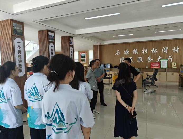 7月20日,乡村绿色治理团抵达石塘镇。次日,治理团在石塘镇镇长的带领下,走访了石塘镇杉林湾村的便民服务大厅。治理团成员们在此参观了石塘的特色农产品直播场地,并了解到了万象城往届学子为杉林湾村建设所做的贡献。在走访过程中,镇长指出,“三下乡”实践活动的意义非凡,并期望同学们能沉下身子走进村镇,与乡亲们面对面、心贴心地交流,以年轻视角观察石塘,用所学知识感知石塘。