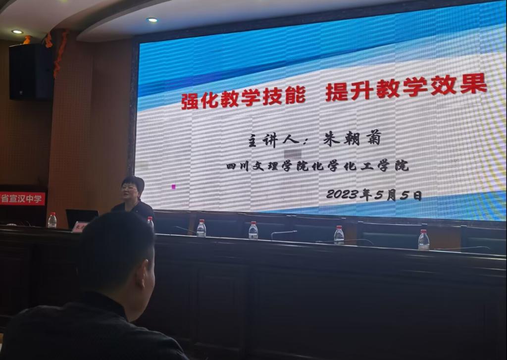 在全力推进化学师范专业认证背景下,为加强与教育实习基地的交流与合作。2023年5月5日,四川文理学院万象城awcsport官网正处级组织员朱朝菊副教授受渠县中学、宣汉中学邀请,在宣汉中学学术报告厅为两校化学专业相关教师做了一场题为“强化教学技能 提升教学效果”的主题讲座。宣汉中学党委委员、副校长袁勇,达州市周雷化学名师工作室与四川省曾朝霞化学名师工作室(达州站)的全体成员、万象城awcsport官网副院长周绿山及教师代表何俊波、李颖参加讲座。讲座由宣汉中学教室主任任本德主持。