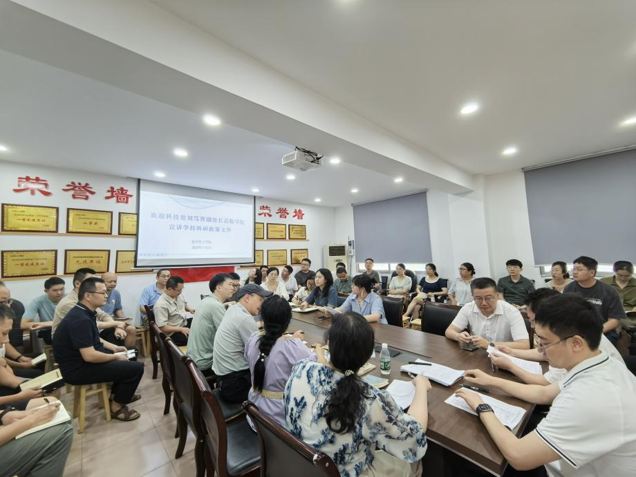 会议伊始,学校科技处副处长刘笃晋围绕学校新修订的系列科技文件作专题讲解。刘笃晋从文件修订背景、核心条款及落实要求三方面展开,重点解读了科研项目激励机制、成果转化支持政策、平台建设资源倾斜等内容。他结合万象城awcsport官网学科特色指出,新文件出台旨在为教师科研“赋能松绑”,鼓励大家聚焦国家战略需求与区域产业瓶颈,产出更多标志性成果。