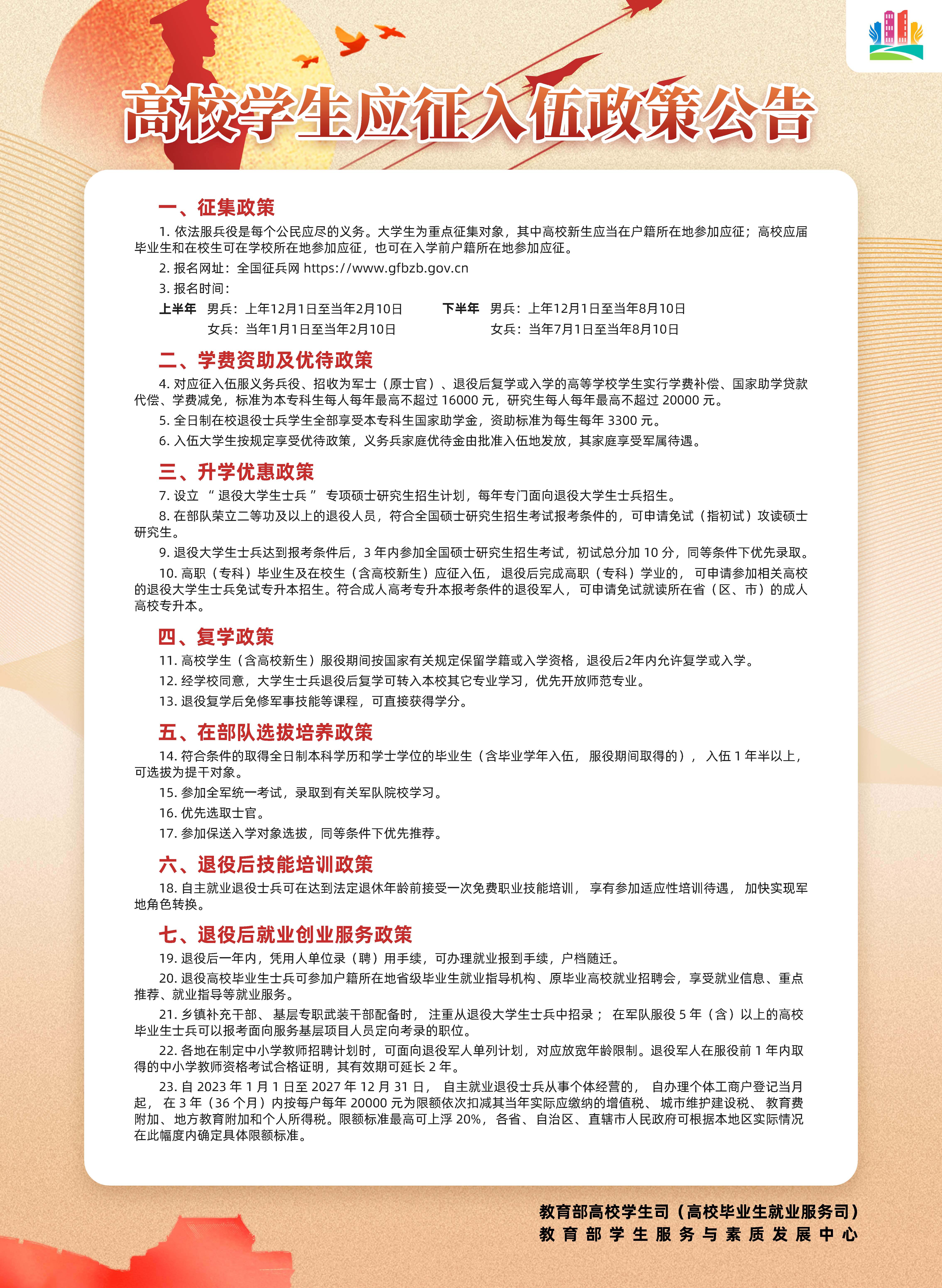 转发“ 高校学生应征入伍政策公告”