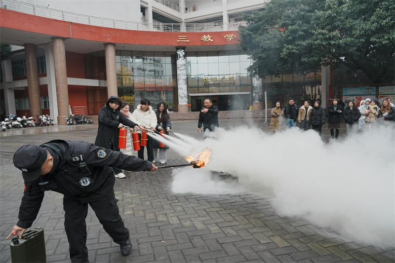 紧接着,邓科长详细阐述了各类消防器材的功能特点和使用方法,并亲自进行了实践演示,耐心指导同学们如何正确操作灭火器,确保在紧急情况下能够迅速有效地应对火灾。