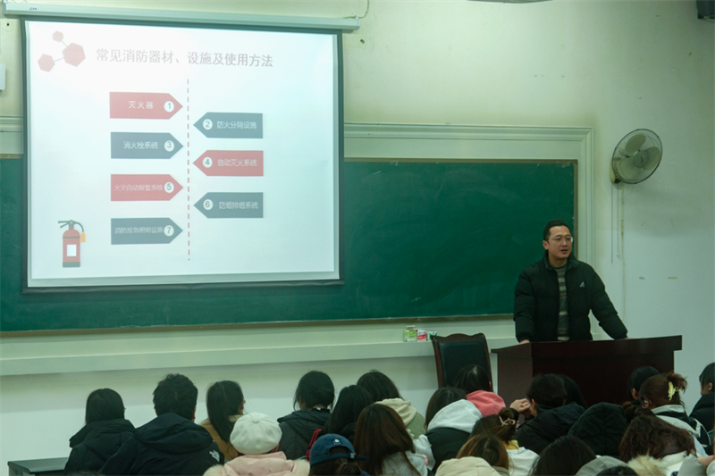 讲座开场,邓科长着重强调了高校消防安全的重要性。他结合近期国内高校频发的火灾事故,特别是近期教学楼因烟头点燃垃圾桶的事件,深刻剖析了火灾给师生安全带来的严重威胁,以此警醒全体师生要时刻保持高度警惕,严格遵守用火用电安全规范。