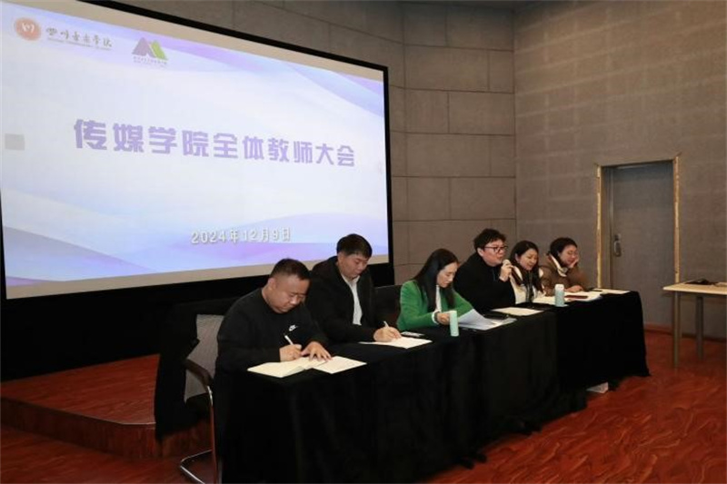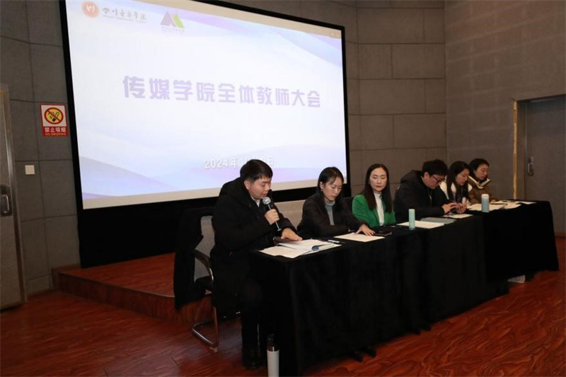 为了做好新一轮本科教育教学审核评估工作,不断强化教风学风建设,2024年12月10日下午,传媒学院在四教102召开了全体教师大会。传媒学院党委书记刘道莉、副书记陈思、副院长刘莉、王利剑、院长助理徐江、董攀以及全体教师参加了本次大会。