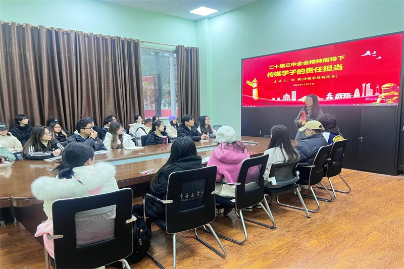 为深入学习贯彻党的二十届三中全会精神,引导传媒学子明确自身责任与使命,传媒学院副院长刘莉于2024年12月17日为党校89期入党积极分子讲授了一堂意义深刻的党课。刘莉副院长围绕着党的二十届三中全会精神展开,重点探讨了传媒学子在新形势下应如何作为。