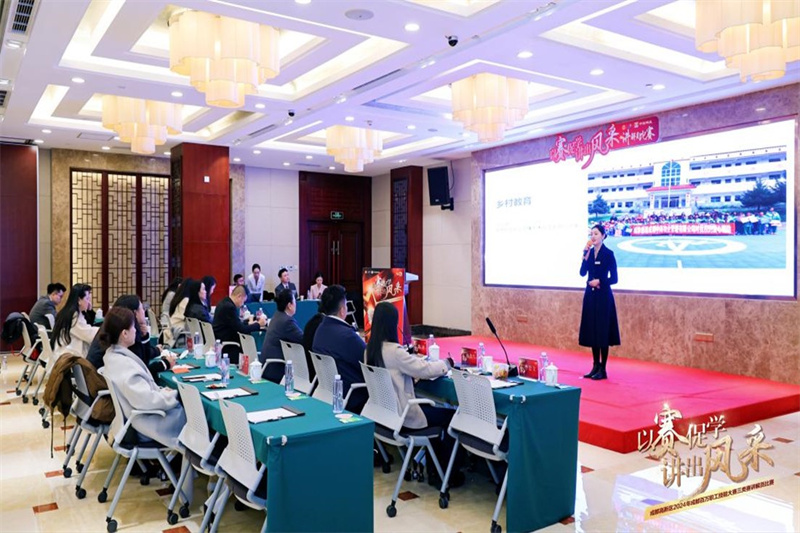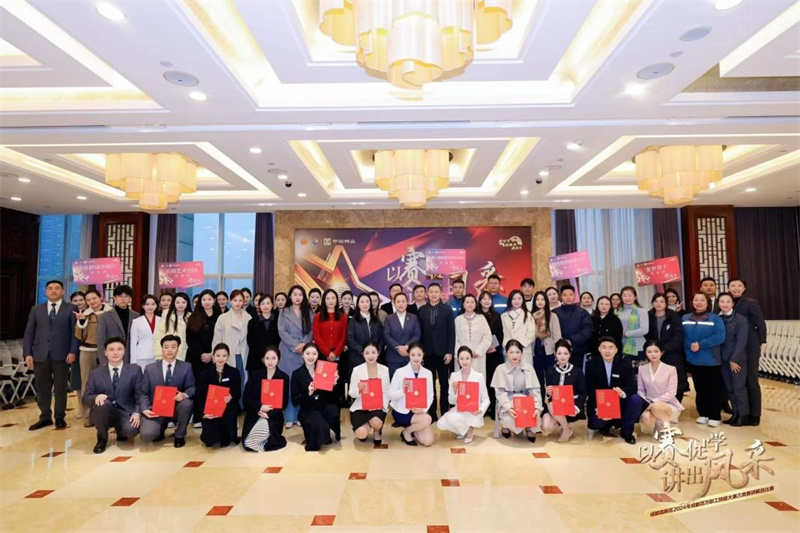 12月23日,继11月访企拓岗活动后,传媒学院党委书记刘道莉、播音与主持艺术系专业教师殷若涵及4名同学再次受邀观赛中海物业主办的2024年成都百万职工技能大赛讲解员比赛。比赛汇聚了来自熊猫基地、天府艺术公园、陆家桥城市展厅、宽窄巷子、四川省制造业智改数转赋能平台等单位的 10 名优秀选手。他们以扎实的专业知识、饱满的精神状态和出色的讲解技巧,为观众带来了一场精彩纷呈的讲解盛宴,充分展现了成都讲解员队伍的专业素养和独特风采。殷若涵老师担任了比赛的评委工作,并对参赛选手的表现进行了细致而深入的点评。