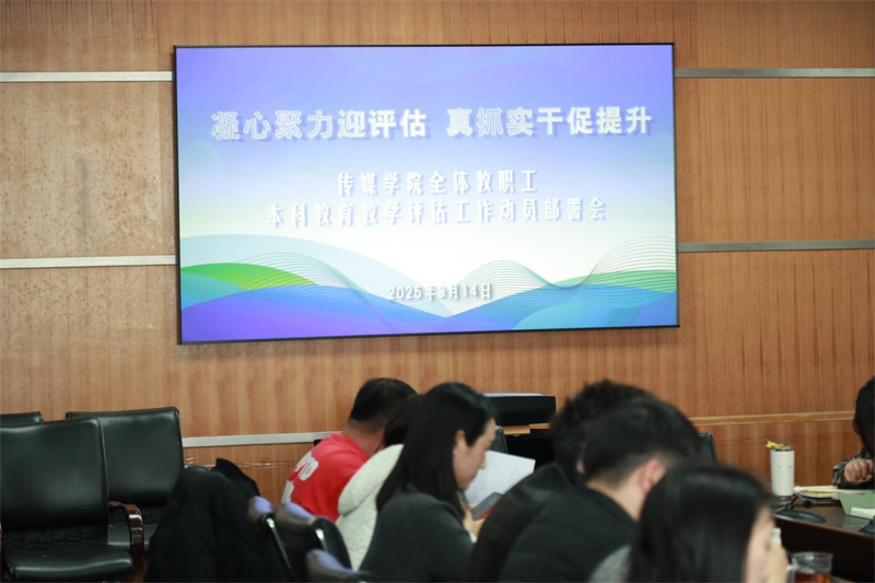 2025 年 3 月 14 日中午,传媒学院在三教第一会议室召开了本科教育教学审核评估工作动员部署会,学院领导班子、全体教职工参加会议。