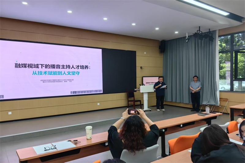 马欣教授指出,成渝地区具有经济与文化的双重定位,而巴蜀文化的“包容性”与“创新性”则是人才培养的根基。从宋代交子到《三体》科幻,从古蜀三星堆到铜梁龙舞,“播音人才需要以文化为根基,可以在新时代下借助AI技术推动非遗‘活态传播’,让文化与技术双双结合,成为核心竞争力。”