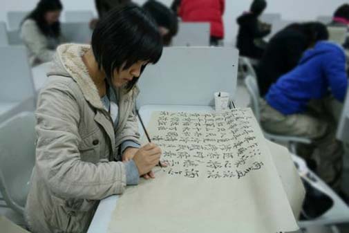 十一月十九日晚上,传播艺术系“续兰亭”书画协会在三教学楼407教室开展了本学期的第一次社团活动。活动一开始,新组成的干部团队、新加入协会的成员们分别做了简短的自我介绍,共同的兴趣爱好使他们的相处极为融洽。 “续兰亭”书画协会由传播艺术系2004级学生赵忠海创办,在传播艺术系领导、老师们的关怀下,协会每年都会涌入很多爱好广泛多才多艺的新成员。新一届的“续兰亭”协会也有了新的发展方向,经过协会干部们的精心策划,协会分成了书法、绘画、摄影、编辑、宣传、外联六个活动部门,书画及摄影三个较为成熟的部门都邀请到相关专业的老师当场进行辅导和交流。 活动中,传播艺术系2006级学生杨凯作为“续兰亭”协会新任会长向大家表态,会尽自己最大的努力将协会发展得更加成熟壮大。在传播艺术系这个大摇篮中成长起来的“续兰亭”会坚持自己的特色,为传播艺术系、为学院争光添彩!