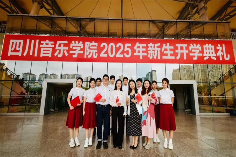 其间,由传媒学院刘超老师、刘婷婷老师,学生处夏占红老师编排指导,播音与主持艺术系8位新生代表为大家带来的集体朗诵节目《弦歌逐梦向朝阳》,深情献词开学典礼。朗诵以多声部配合的形式呈现,内容紧扣川音学子的艺术梦想与拼搏成长,最后升华为青春报国的责任与担当,播出了全体新生心中的“最强音”。