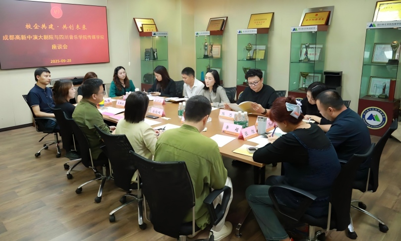 在围绕“大学生实践实训基地建设”“就业实习合作”“创新创业活动联动”三大议题的讨论中,传媒学院提出希望以实践实训基地为载体,将剧院的真实项目引入课堂,实现“学中做、做中学”;同时推动行业需求融入《艺术导聆》等课程,使学生接触前沿动态与实操经验,提升专业素养。成都高新中演大剧院积极响应,副总经理岳俊峰表示,将为川音传媒学院学生开放实习岗位,并邀请行业专家参与课程设计,共同培养符合市场需要的人才。此外,双方还就建立长期人才输送机制、提供精准职业指导达成共识。