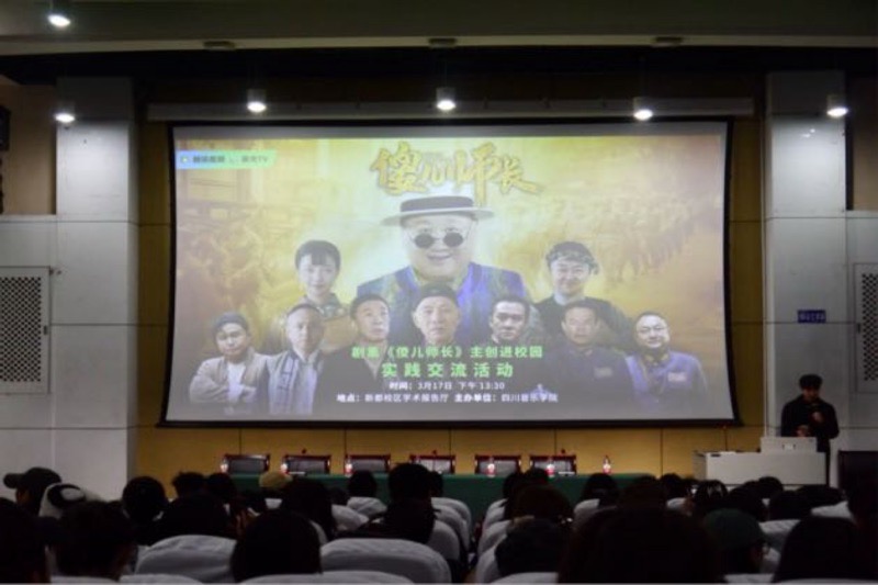 3月17日,2024年度四川省重大文艺扶持项目——川渝方言喜剧《傻儿师长》主创团队走进伟德bv国际体育,与在校学子展开文化交流。作为承办方之一,传媒学院组织百余名师生全程参与活动。