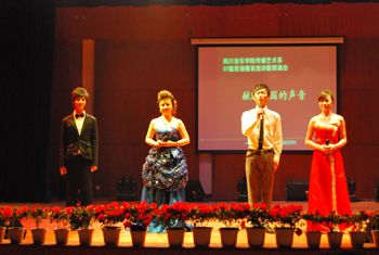 2009年下午14:30,在新校区演艺厅,激越的鼓点声拉开了2007级双语播音与主持班的《献给祖国的声音》朗诵会的序幕。开篇的《回望》,让大家感受到了祖国60年走过的光辉历程、60年铸造的辉煌;情景朗诵《永远的格桑梅朵》、《夜幕下的哈尔滨》、《春天的故事》、电影片段《风声》的配音,使演出掀起一个又一个高潮;解说《走过这些年》、《再说长江之浦东》以及双语解说的《建国60年阅兵式》充分体现了我系的专业特色及同学们的专业水平。 最后,演出在歌舞朗诵《我和我的祖国》中落幕。 这次朗诵会既是2007级双语播音与主持专业的学生的一次专业学习总结,也是一次爱国主义教育活动。 系主任王江、向武军书记在演出时,分别发表了热情洋溢的讲话。