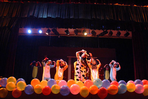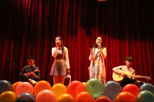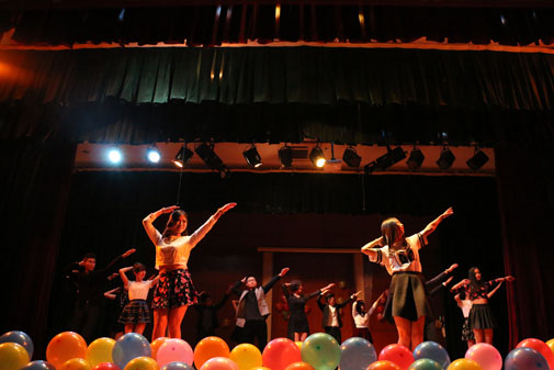 晚会由双语播音一班的乐韵、唐阳和双语播音二班柴荣、单笛主持。随着音乐响起,一群帅气的大一新生以一支热辣精彩的开场舞引燃了全场气氛,他们活力四射的表演带动起了全场同学们的热情。之后的歌舞、朗诵、魔术、小品等精彩纷呈的节目同样为在场观众们呈现出了丰盛的视听盛宴。其中,来自专题班、双语播音一班及学生会文体部的同学们所带来的《try》、《我的大学》、《开场舞》节奏明快,让人不舍结束;由文艺班表演的三句半及《最强天团》幽默诙谐、夺人眼球;由双语播音一班表演的《B级人生》引人入胜;同样由双语播音一班带来的《写给青春的歌》让同学们更是感同身受、心随歌走;2013级学长徐毅带来的魔术表演则为晚会加入了些许神秘、魔幻的气息;电视剧班带来的《管他什么音乐》又引起了在场观众们的一阵热浪。