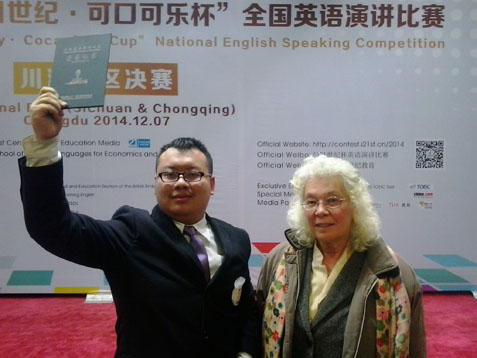 由中国日报社二十一世纪英语教育传媒举办的第二十届“21世纪·可口可乐杯”全国英语演讲比赛于2014年12月7日在西南财经大学柳林校区进行。 我系2012级英汉双语播音专业学生台宝童同学(指导教师:杜红艳)在本届比赛中表现优异、成绩突出,最终荣获本届全国英语演讲比赛二等奖。