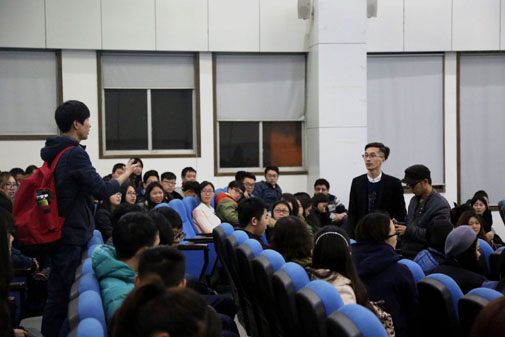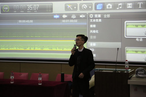 2015年3月12日晚6点,来自沈阳的青年导演、摄影师,指南针工作室负责人王楠老师来到我院新都校区图书馆学术报告厅,为我系学生开展了一场主题为“微电影拾音和声音技巧”的教学讲座。出席讲座的有传播艺术系李超老师,成都阿昆影像工厂工作室负责人杨昆老师以及传播艺术系的全体同学。 本次讲座王楠老师通过分享个人摄影作品和求学与创业经验向同学们展示了一个追梦人所付出的努力和汗水。他从“更好的品味、更高的标准、学会营销自己、承受失败”等方面提出了指南针品牌塑造成功的十二定律。他向同学们指导了影视后期中声音如何录制的技巧要点,并现场与同学们交流平时在拍摄和后期剪辑时遇到的典型难题和所使用的解决技能。王楠老师还对现场互动的同学赠予了纪念品。 王楠老师以幽默的语言、独特的见解贯穿讲座始终,讲座现场气氛热烈,同学们反映积极,讲座获得圆满成功,得到了同学们的广泛好评。愿我系学子在接下来的学习中不断加深专业与实践,坚持专业梦想,不忘初心。