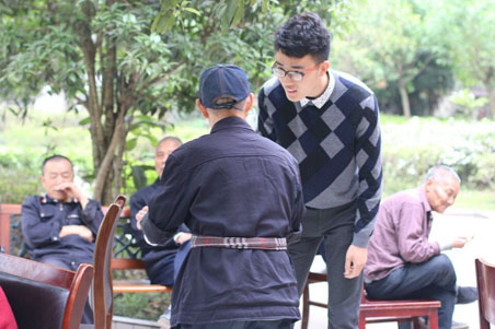 2015年4月25日早上9点,“川音多背一公斤”独立志愿者团队全体核心成员带领志愿者们前往新都区三河场敬老院看望孤寡老人。前几次团队都是以租自行车的方式“绿色骑行”,这次由于天气原因,大家一致决定改换乘坐公交车前往。 刚到敬老院门口,老人们就热情地和我们打招呼,让大家倍感亲切,志愿者们和爷爷奶奶围坐在一起,例期来的志愿者们已经有了相对熟悉的关爱对象,同时也引导新来的志愿者和老人们进行交流并很快融入其中。 志愿者们关心着老人们近期的生活状况、心理动态,然后给他们按摩,和他们一起打乒乓球。同时,老人们给我们分享他们生活的点点滴滴,我们也和老人们诉说我们的喜怒哀乐,最终和老人们打成一片、欢颜笑语。 春日的阳光晒在我们的脸上,暖在老人和志愿者们的心里。此次活动是一项长期公益项目,每隔两周志愿者们就会前往开展一次,希望有越来越多的人加入到这个活动中来,给老人们更多一点关爱,让他们不再总是孤单。