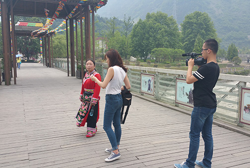 5月14日、15日,系主任包德述教授带领传播艺术系屈涂高阳、辜博文、宋思浩、金小琪等同学前往四川省汶川县映秀、水磨镇展开了为期两天的调研,其目的是探寻微电影艺术在传播少数民族文化中的创新与实践。 14日,当地导游带领他们参观了地震后的映秀,他们不仅拍摄了当地独具特色的建筑,还对导游进行了采访,向他了解在震后的七年中,这座小镇巨大的变化以及他们独有的风土人情。15日,他们又前往了汶川县水磨镇,感受在灾后重建中南粤新元素与藏羌文化交相辉映的各种艺术形式,拍摄震后重建的独特风景,观看当地的藏族舞蹈和羌族舞蹈。在拍摄过程中,他们还现场采访了在汶川地震中断了手臂的老婆婆,了解汶川地震七年来当地人民的生活变迁和艺术传承。 为期两天的拍摄与采访,不仅让传播艺术系的学子收集到大量的素材,而且了解到汶川地震后的人们生活的巨大变迁和传统文化艺术的传承与发展。同学们表示,要充分利用微电影这种艺术形式,为我国少数民族文化的传播做出应有的努力。