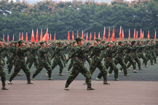 军训是严格而紧张的,近半个月来同学们在烈日下、细雨中站军姿,踢正步……军训是充实而宝贵的,同学们锻炼体魄、磨练意志、锤炼品质,更体会到与教官、同学间的浓浓情谊,是人生中一笔宝贵的回忆与财富。