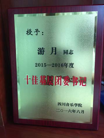 祝贺游月同志荣获“十佳基层团委书记” 荣誉称号